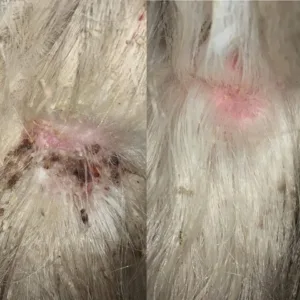 The before and after photo is what typical Mallenders & Sallenders looks like, showing on the right the improvement and legs clear of scabs.